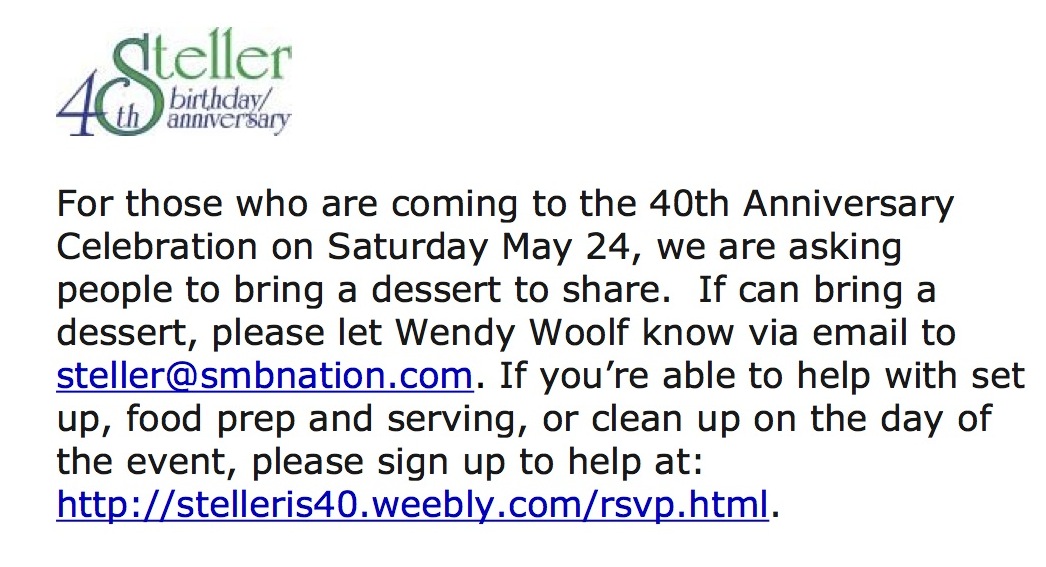 Coming to the 40th Anniversary? Bring a dessert to share!