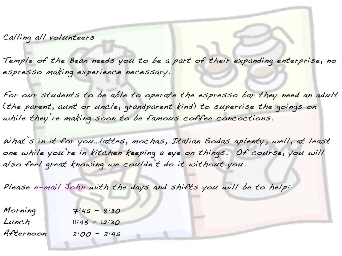 This entry was posted in Volunteer Opportunities on October 9, 2011 by Steller Parent Group.